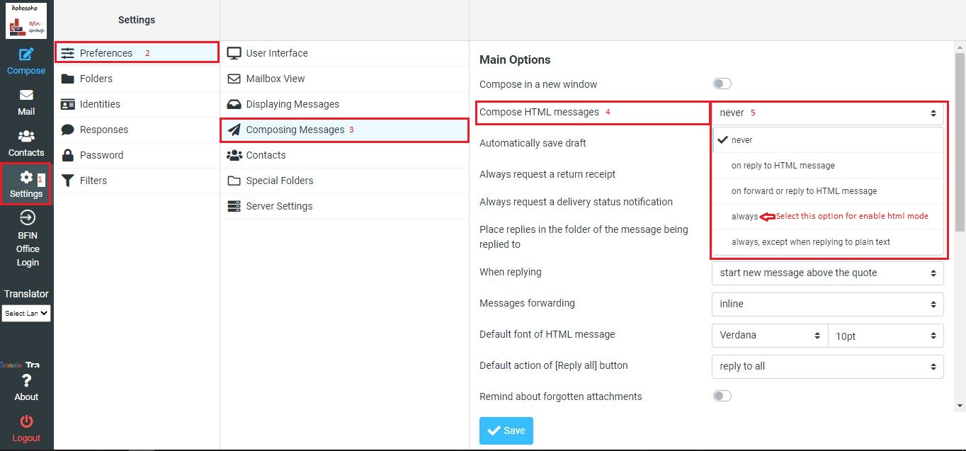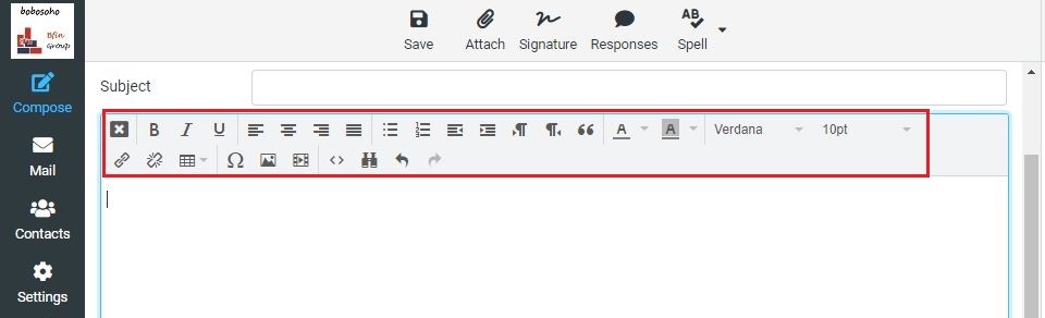 In Bobosohomail you can easily type your messages in HTML format, and you can also make HTML email templates on your own. There is some option you have to enable you to enjoy this feature. But it depends on your settings, the compose screen shows a simple text field to enter the message or a rich text editor with a toolbar that enables text formatting, bullet lists, image embedding, inserting source code, and many more.